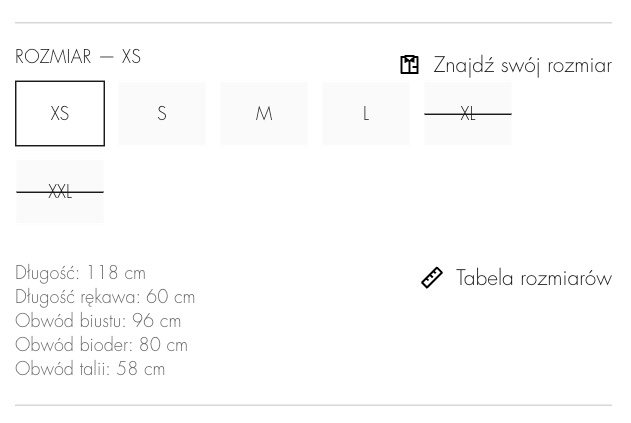 W przypadku sukienek, spódnic czy spodni – mierz pionowo od najwyższego punktu (np. ramienia, talii) aż po dolny brzeg ubrania.